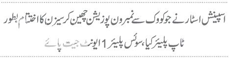 اسپینش اسٹار نے جوکووک سے نمبرون پوزیشن چھین کر سیزن کا اختتام بطور ٹاپ پلیئرکیا، سوئس پلیئر1ایونٹ جیت پائے