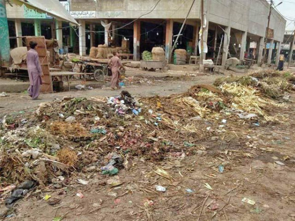 منڈی میں جگہ جگہ کچرا اور گندگی ،منڈی کی اندرونی گلیوں اور سڑکوں پر گلے سڑے پھل اور سبزیوں کے ڈھیر لگ گئے