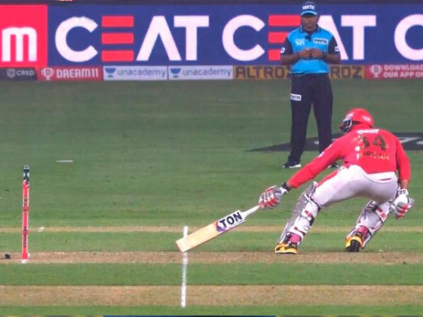 19 ویں اوور کی تیسری گیند پر میانک اگروال نے 2 رنز بنائے تاہم اسکوائر لیگ امپائر مینن نے فیصلہ دیا کہ دوسرے بیٹسمین کرس جورڈن نے پہلا رن لیتے ہوئے کریز کے اندر بیٹ نہیں رکھا، اس لیے یہ شارٹ رن ہے اور اگروال کو صرف ایک رن ہی ملے گا۔ اس وقت ری پلیز میں صاف دیکھا گیا کہ جورڈن نے درست اندازمیں رن مکمل کیا تھا۔