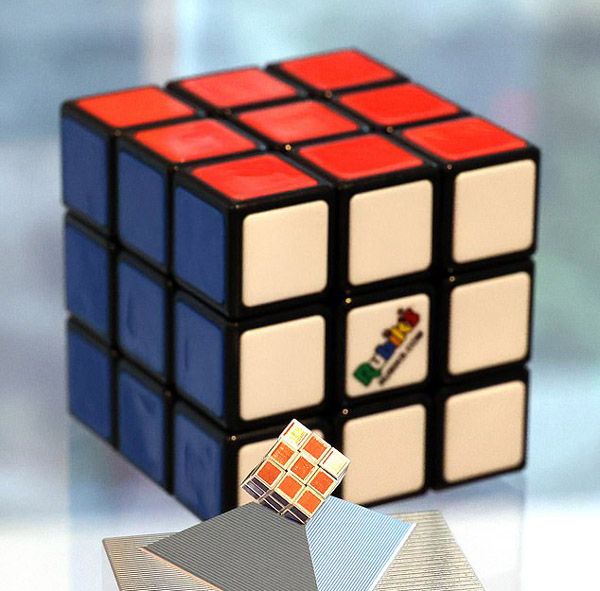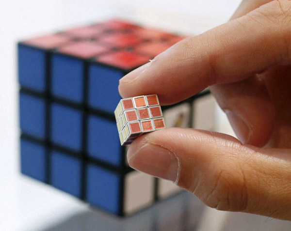 چوکور رنگ برنگی خانے والے معمے ریوبک کیوب دنیا بھر میں استعمال ہوتے ہیں۔ اس ضمن میں جاپانی کمپنی نے دنیا کا سب سے چھوٹا ریوبک کیوب بنایا ہے جس کے ساتھ کھیلا جاسکتا ہے۔ تاہم اس کی ایک سمت کا رقبہ 9.9 ملی میٹر اور وزن صرف دو گرام ہے۔