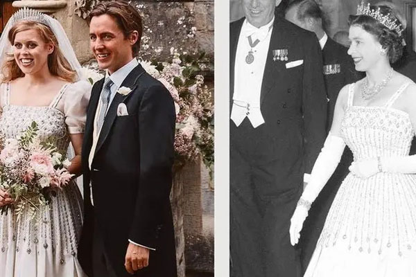 شہزادی بیٹرس نے اپنی دادی ملکہ برطانیہ سے یہ لباس ادھار لیا اور معمولی سی ترمیم کے بعد اپنی شادی کے روز پہنا، اس موقع پر شہزادی نے سر پر وہ تاج بھی سجایا جو ملکہ نے 1947 میں شہزادہ فلپ کے ساتھ اپنی شادی کے موقع پر پہنا تھا۔