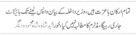 وزیرداخلہ کی جانب سے ریمارکس واپس نہ لینے تک بائیکاٹ جاری رہے گا.فوٹو:فائل