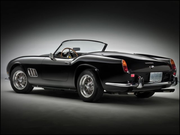 سیاہ رنگ کی یہ کار ’’فیراری 250 جی ٹی ایس ڈبلیو بی کیلیفورنیا اسپائیڈر‘‘ ہے جو 1961 میں تیار کی گئی تھی۔ (فوٹو: انٹرنیٹ)