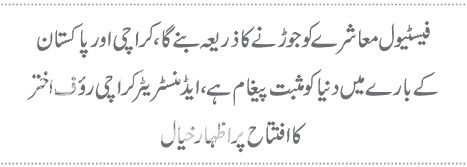 فیسٹیول معاشرے کوجوڑنے کا ذریعہ بنے گا،کراچی اور پاکستان کے بارے میں دنیاکومثبت پیغام ہے، ایڈمنسٹریٹرکراچی رؤف اختر