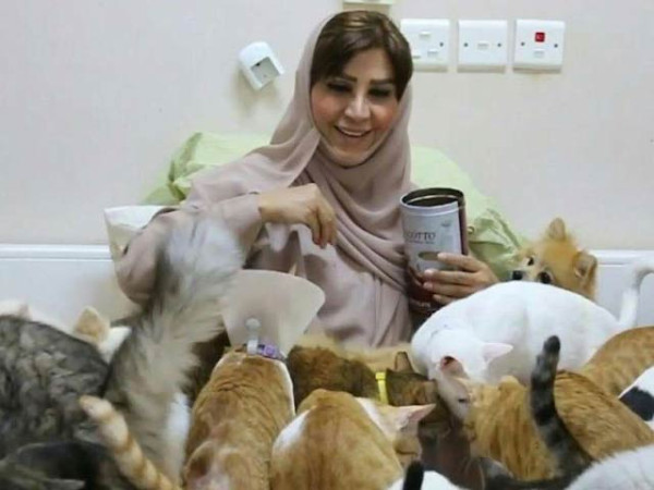 مسقط کی مریم البلوشی 500 بلیوں اور کتوں کی کفیل ہیں جن کی پرورش پر ہر ماہ 12 لاکھ روپے خرچ ہوتےہیں۔ فوٹو: گلف نیوز