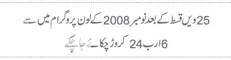 25ویں قسط کے بعدنومبر2008 کے لون پروگرام میں سے6ارب24کروڑچکائے جا چکے