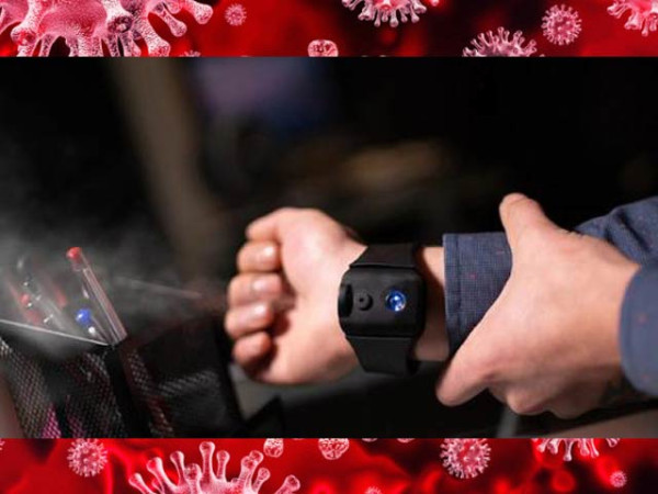 اسپرے کیئر بینڈ میں پورے دن کا سینیٹائزر بھرا جاسکتا ہے اور بٹن دباتے ہی اسپرے کی پھوار خارج کرتا ہے۔