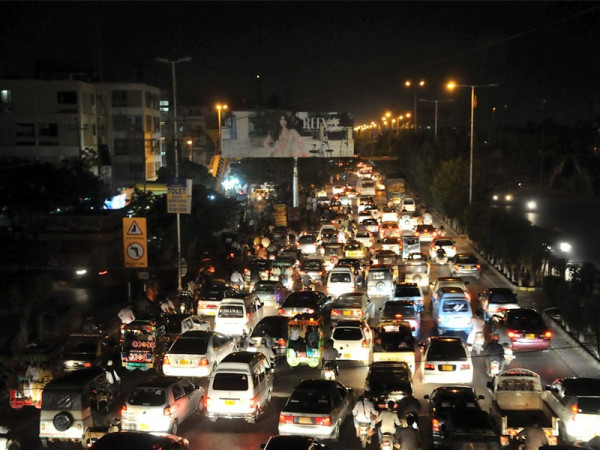 نمائش پر دھرنے کی وجہ سے ایم اے جناح روڈ سی بریز سے گرومندر جانے اور آنے والی سڑک کو بند کردیا گیا، ٹریفک پولیس