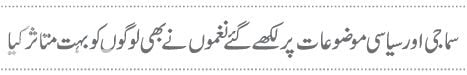 سماجی اور سیاسی موضوعات پر لکھے گئے نغموں نے بھی لوگوں کو بہت متاثر کیا