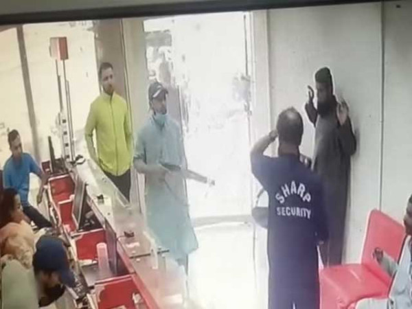 بینک میں داخل ہونے کے بعد ڈاکوؤں نے خوف پھیلانے کی غرض سے ہوائی فائر بھی کیے، ملزمان کے ہاتھوں میں پستول اور رپیٹر نظر آرہے ہیں ، چاروں ڈاکو شلوار قمیص میں ملبوس اور شناخت چھپانے کی غرض سے سرجیکل ماسک پہنے ہوئے ہیں، ملزمان نے کیش کاؤنٹر سے رقم لوٹی اور فرار ہوگئے۔