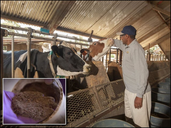 تازہ تجربات کے دوران گایوں کے چارے میں سرخ سمندری گھاس کی معمولی مقدار شامل کی گئی۔ (فوٹو: یونیورسٹی آف کیلیفورنیا ڈیوس)