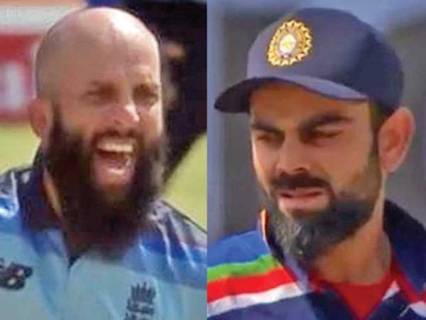 ویرات کوہلی انٹرنیشنل کرکٹ میں 9 ویں مرتبہ معین کی گیند پر آؤٹ ہوئے ہیں، تیسرے ون ڈے میں کوہلی نے بیک فٹ پر جاتے ہوئے معین علی کو کھیلنا چاہا مگر گیند گھومتی ہوئی سیدھی لیگ اسٹمپ سے جاٹکرائی، کوہلی چند لمحے تو حیرت زدہ کھڑے رہے، انھیں سمجھ ہی نہیں آئی کہ آخر ہوا کیا ہے، حیرت ان کے چہرے سے ہی ظاہر ہورہی تھی، انھوں نے صرف 7 رنز بنائے۔