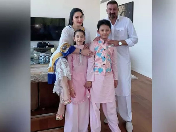 سنجے دت اور ان کی اہلیہ نے سفید جب کہ بچوں نے پنک شلوار قمیص زیب تن کیا ہوا تھا