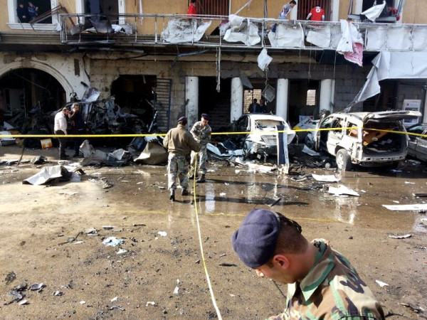 بیروت: شام کی سرحد پر واقع قصبے حرمل میں حزب اللہ کے زیراثر علاقے میں کار بم دھماکے کے بعد لبنانی سیکیورٹی اہلکار معائنہ کررہے ہیں۔ فوٹو: اے ایف پی
