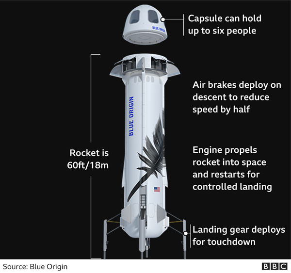 یاد رہے کہ بلیو اوریجن نے مسافروں کو خلا میں لے جانے کے لیے دوبارہ استعمال کے قابل راکٹ بنایا گیا ہے۔
