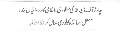 چارٹر آف ڈیمانڈ کی منظوری،انقامی کارروائیاں بند،معطل اساتذہ کو فوری بحال کرنیکا مطالبہ