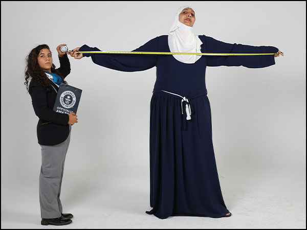 • ان کا بایاں ہاتھ (ہتھیلی سے انگلیوں تک) 9.56 انچ لمبا ہے جو کسی بھی خاتون کا سب سے لمبا ہاتھ ہے؛ اور