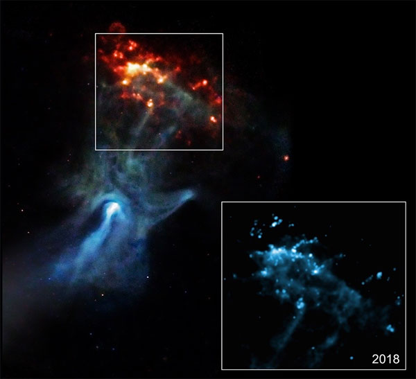 ناسا کے ماہرین نے ان تمام تصویروں کا باریک بینی سے مشاہدہ کرنے کے بعد بتایا ہے کہ یہ ''پراسرار ہاتھ'' اصل میں زبردست توانائی خارج کرنے والی گیس اور گرد کے ایک وسیع بادل (نیبولا) پر مشتمل ہے جو 150 نوری سال تک پھیلا ہوا ہے۔ (یعنی روشنی کو 3 لاکھ کلومیٹر فی سیکنڈ کی رفتار سے سفر کرتے ہوئے، اس کے ایک کنارے سے دوسرے کنارے تک پہنچنے میں 150 سال لگ جاتے ہیں۔)