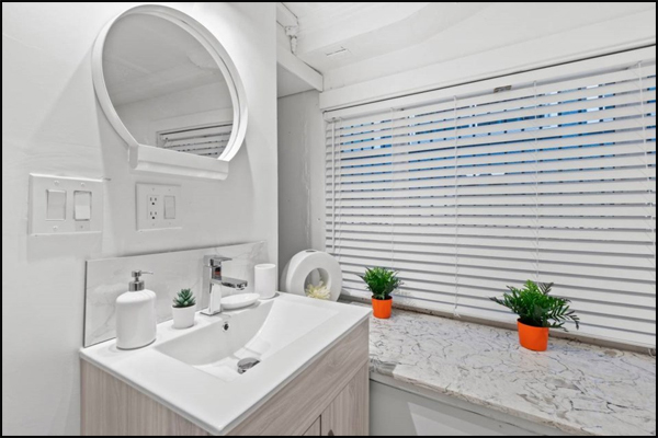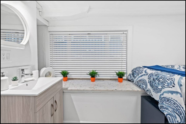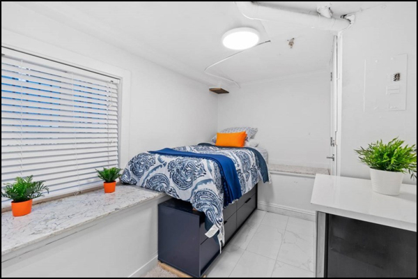 اس غسل خانے کی اندرونی تصاویر میں آرام دہ بستر بھی دیکھا جاسکتا ہے جس کے نچلے حصے میں درازیں موجود ہیں
