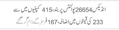 انڈیکس 26 ہزار 654 پوائنٹس پر بند،415 کمپنیوں میں سے 233 کی قیمتوں میں اضافہ، 167فرمزکے دام گرگئے