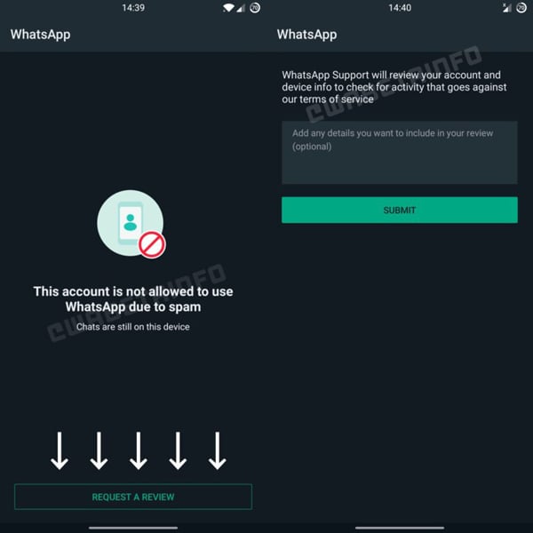 آنے والی اپ ڈیٹ میں یہ فیچر آپ کے واٹس ایپ میں شامل ہوجائے گا اور آپ اپنی صورت حال کے مطابق نظر ثانی کی درخواست دے سکیں گے۔ واٹس ایپ سپورٹ آپ کے اکاؤنٹ پر ہونے والی سرگرمیوں کا جائز لیتے ہوئے آپ کی درخواست پر نظر ثانی کرے گی۔