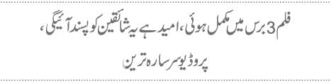 فلم 3 برس میں مکمل ہوئی،امید ہے یہ شائقین کوپسندآئیگی،پروڈیوسرسارہ ترین