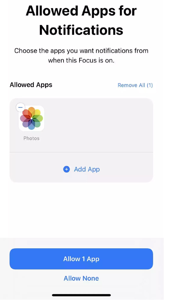 اگلے مرحلے میں آپ کو اس ایپ کو منتخب کرنے کی ضرورت ہے، جسے آپ نوٹی فیکیشن ظاہر کرنے کی اجازت دینا چاہتے ہیں۔ دی گئی فہرست سے ایپس کو ایڈ کرنے کے لیے '+' بٹن پر ٹیپ کریں، آپ Time Sensitive آپشن کو فعال کرکے Allow بٹن پر ٹیپ کر سکتے ہیں۔ کانٹیکٹ نوٹیفیکیشن کی طرح یہاں بھی آپ کسی بھی ایپ کو نوٹیفکیشن Allow نہ کرنے کا آپشن منتخب کر سکتے ہیں۔