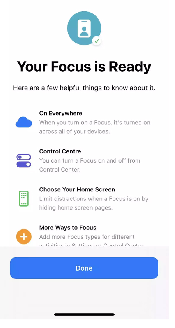 ایک بار یہ سیٹنگز مکمل کرنے کے بعد آپ کا فوکس موڈ تیار ہوجائے گا۔