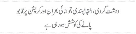 دہشت گردی،انتہاپسندی، توانائی بحران اور کرپشن پر قابو پانے کی کوشش ہورہی ہے
