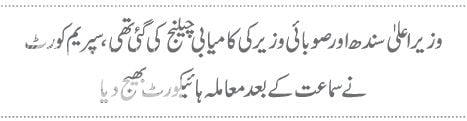 وزیراعلیٰ سندھ اورصوبائی وزیرکی کامیابی چیلنج کی گئی تھی،سپریم کورٹ نے سماعت کے بعد معاملہ ہائیکورٹ بھیج دیا