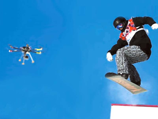 برف سے ڈھکی قابل دید ڈھلوانوں پر ہونے والے مقابلوں میں فری اسٹائل اسکیئرز اور اسنو بورڈرز کی تصاویر کیلیے تاریخ میں پہلی مرتبہ کیمرے سے لیس ایک ڈرون پرواز کررہا ہے، اسٹینڈز میں موجود تماشائی مکڑی نما اس جہاز سے بہت دور لیکن بڑی اسکرینز پر اس کی بھیجی گئی دیدہ زیب تصاویر سے محظوظ ہوسکتے ہیں۔ صرف 4 کلوگرامز وزنی اور 1.30 میٹرز چوڑا یہ ڈرون ایک گھنٹے میں 70 کلومیٹرز کی رفتار سے پرواز کرسکتا ہے، اس سے بقول ڈرون کنٹرولر فلپس ڈیلافوسے کے تصاویر لینے میں آسانی ہوتی ہے۔ اپنے6 روٹرز کے ساتھ ایک چھوٹے سے ہیلی کاپٹر جیسی ڈیوائس ایسے زاویے اور تصاویر پیش کرتی ہے جو کیبلز سے منسلک یا کندھوں پر موجود کیمروں سے حاصل کرنا ناممکن ہیں۔