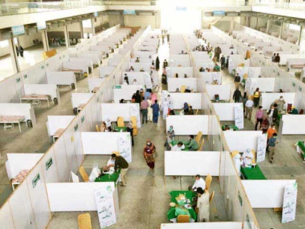 کراچی ایکسپو سینٹر میں ویکسی نیشن عملے کے احتجاج سے شہری پریشان