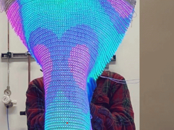 تکمیل کے بعد اب کپڑے پر مختلف تصاویر اور رنگ نمودار ہوتے ہیں۔ اس میں ٹچ اسکرین کی سہولت بھی موجود ہے اور یہ درجہ حرارت بدلنے اور لوگوں کے چلنے سے بجلی بناتا رہتا ہے۔