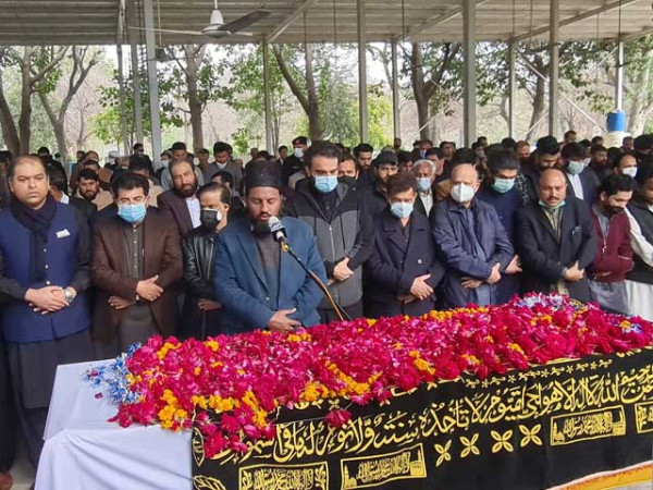 نماز جنازہ میں چیئرمین سینیٹ صادق سنجرانی ،وفاقی وزراء اور اراکین پارلیمنٹ سمیت شہریوں کی بڑی تعداد نے شرکت کی۔