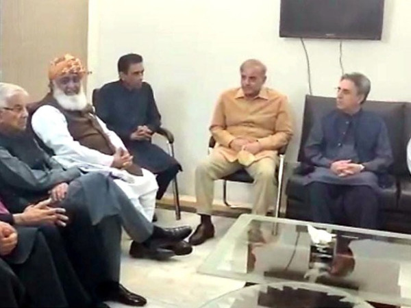مسلم لیگ (ن) کے صدر اور پارلیمنٹ میں اپوزیشن لیڈر شہباز شریف اور متحدہ اپوزیشن (پی ڈی ایم) کے سربراہ مولانا فضل الرحمان نے وزیر اعظم کےخلاف تحریک عدم اعتماد کامیاب بنانے کے لیے حکومت کی اتحادی جماعت متحدہ قومی موومنٹ (ایم کیو ایم) پاکستان کے رہنماوں سے ملاقات کی ہے۔