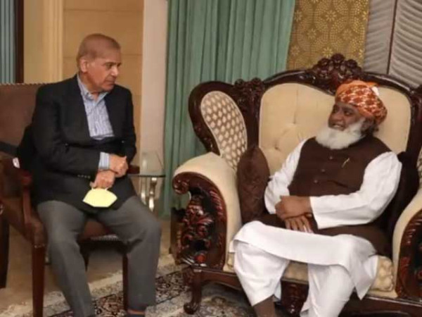 مولانا فضل الرحمان اور شہباز شریف کی ملاقات کی تصویر (فوٹو پی ایم ایل این)
