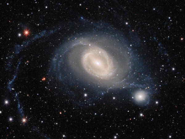 چلی میں ڈارک انرجی دوربین پر لگے حساس کیمرے نے یہ غیرمعمولی کائناتی تماشہ ہمارے لئے ہی عکسبند کیا ہے جس کی تفصیل کو زوم کرکے بھی دیکھا جاسکتا ہے۔ یوں اس شاندارمنظر کی جزیات کو قریب سے دیکھا جاسکتا ہے۔ تصویر میں دو بڑی کہکشاؤں این جی سی 1512 اوراین جی سی 1510 کو ایک دوسرے سے ملتے یا ٹکراتے ہوئے دیکھا جاسکتا ہے۔