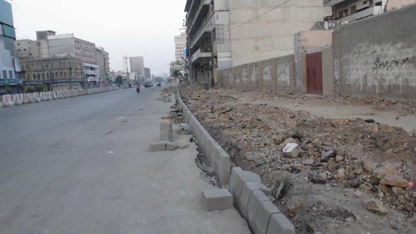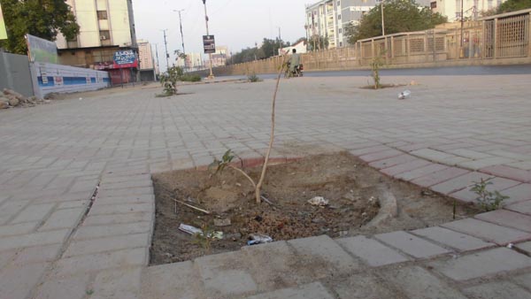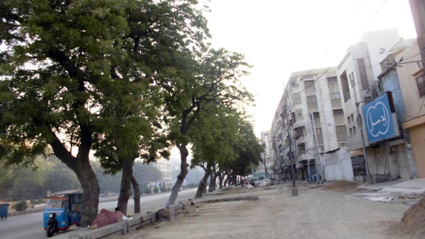 کچھ ایسی ہی صورتحال کیپری سینما سے نمائش کی جانب فٹ پاتھ کی ہے۔ جہاں فٹ پاتھ کو وسیع کرنے کےلیے تمام دیسی درختوں کا صفایا کردیا گیا اور یہی حال کیپری سے تھوڑا آگے سیونتھ ڈے اسپتال کے سامنے پرنس سینما کے گرین بیلٹ اور فٹ پاتھ کا ہے۔