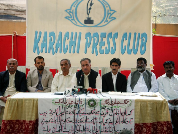 کراچی: پاکستان کسان اتحاد کے مرکزی صدر خالد محمودکھوکھر بھارت کو بلاامتیار مارکیٹ رسائی (این ڈی ایم اے) دینے کے خلاف پریس کلب میں پریس کانفرنس سے خطاب کررہے ہیں ۔ فوٹو : محمد ثاقب/ ایکسپریس