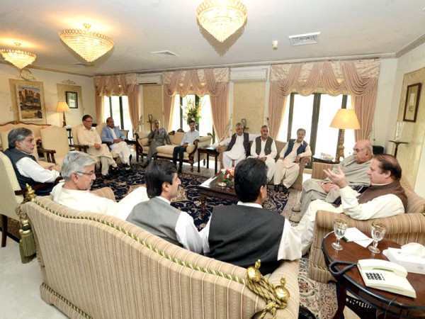 نوازشریف کی زیرصدارت ن لیگ کا مشاورتی اجلاس،ناموں کی حتمی منظوری دے دی گئی۔ فوٹو: این این آئی