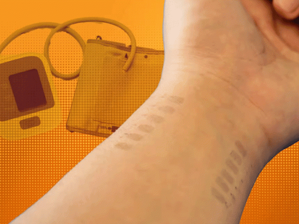 اس ای ٹیٹو نما اسٹیکر کو گرافین سے بنایا گیا ہے جو بلڈ پریشر کے متعلق مسلسل ڈیٹا فراہم کرسکتا ہے۔ اگرچہ بازو کے گرد لپیٹنے والی پٹی سے بلڈ پریشر لینا سب سے قابلِ اعتبار ہوتا ہے لیکن اس طرح صرف اسی وقت کی ریڈنگ حاصل ہوسکتی ہے۔ تاہم کئی مریض ایسے ہیں جن کا بلڈ پریشر بار بار معلوم کرنا ضروری ہوتا ہے۔