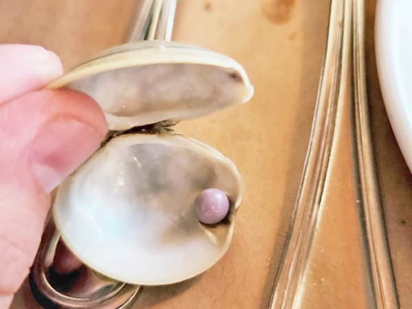 امریکی ریستوران میں عشایئے کے دوران سی فوڈ کھاتے ہوئے سیپی سے ایک خوبصورت بنفشی رنگ والا موتی برآمد ہوا ہے