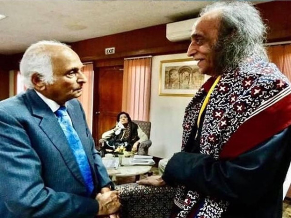 امداد حسینی کی اردو کے لیجنڈری ادیب انتظار حسین کے ساتھ ملاقات کی ایک یادگار تصویر : فوٹو: فیس بک