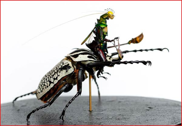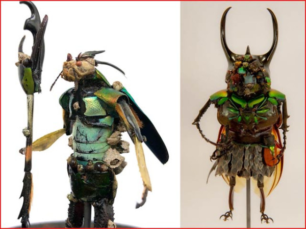 مردہ کیڑوں کے اعضا سے جنگجو اور فرضی کردار بنانے والا فنکار