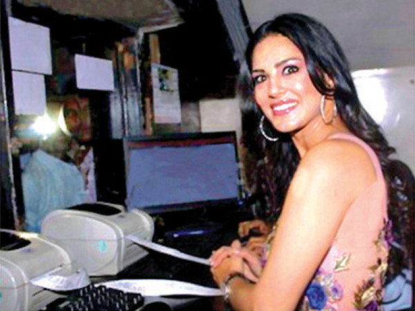 ممبئی: اداکارہ سنی لیون مقامی سینما میں اپنی فلم راگنی ایم ایم ایس ٹو کے ٹکٹ فروخت کر رہی ہیں۔ فوٹو: فائل