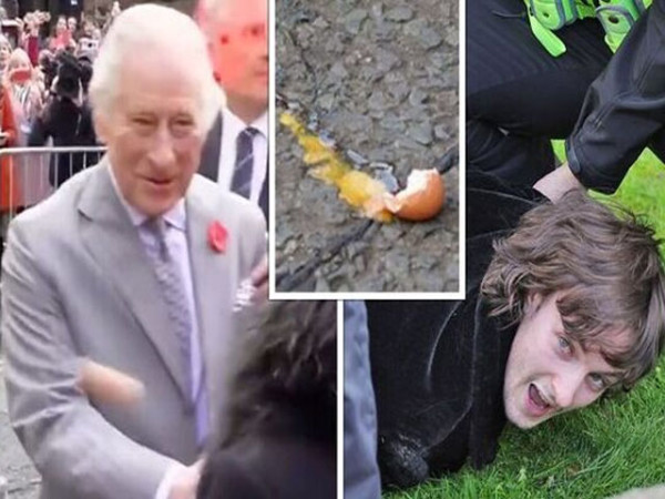 برطانیہ کے شاہ چارلس دوم اور ان کی اہلیہ پر عوامی دورے کے درمیان ایک نوجوان نے تین انڈے برسائے جو شاہی جوڑے کے نہایت نزدیک گرے۔