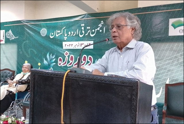انہوں نے کہا کہ ''اجتماعی سطح پر اردو لکھنے یا پڑھنے والوں کی تخلیقی صلاحیت بتدریج تنزلی کا شکار ہے کیونکہ انہیں حوصلہ افزائی نہیں مل رہی جس کے نتیجے میں ملک میں Intellectual Deprivation بڑھتی جارہی ہے۔ جامعہ کراچی میں تقریباً 40 ہزار طالبعلم ہیں اور تدریسی شعبے سے وابستہ تقریباً 700 یا 800 اساتذہ پی ایچ ڈی ہیں، وہ معاشرے کو کیا دے رہے ہیں؟