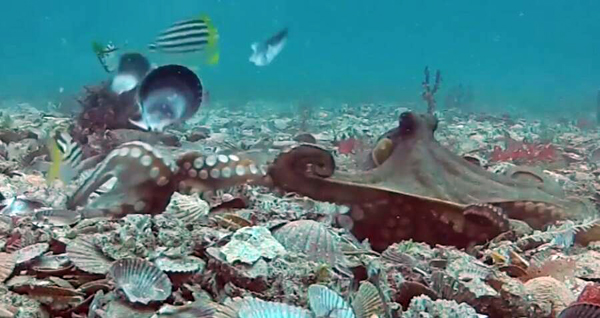 مادہ آکٹوپس کی نر پر مٹی اور سیپی پھینکنے کی ویڈیو وائرل