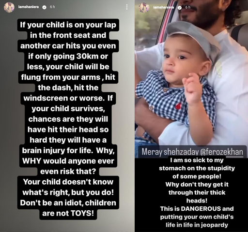 شنیرا اکرم نے فیروز خان کو مخاطب کرتے ہوئے لکھا کہ آپ اپنے بچے کی زندگی کو رسک میں ڈال رہے ہو۔