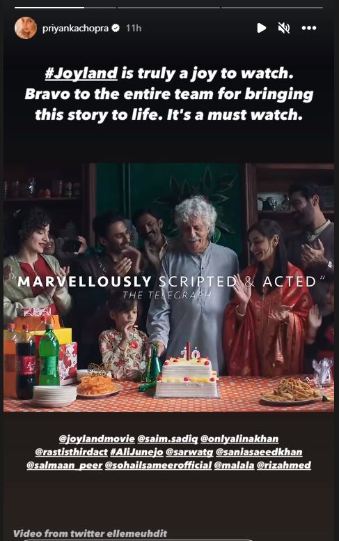 پریانکا چوپڑا نے اپنے تمام مداحوں اور فلم شائقین کو مشورہ دیا ہے کہ وہ صائم صادق کی فلم جوائے لینڈ ضرور دیکھیں۔